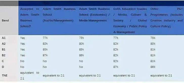 除了商学院,格拉斯哥大学对于双非学生还是比较友好的,国内439所大学都在格拉的list名单上,尤其是一些中国学生扎堆的专业,只要保持分数优势,拿格拉的offer其实不难。