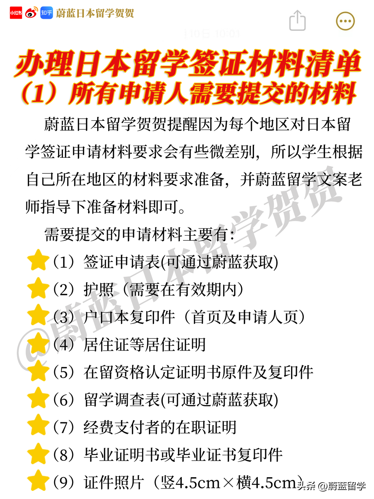 蔚蓝日本留学贺贺提醒因为每个地区对日本留学签证申请材料要求会有些微差别,所以学生根据自己所在地区的材料要求准备,并蔚蓝留学文案老师指导下准备材料即可。