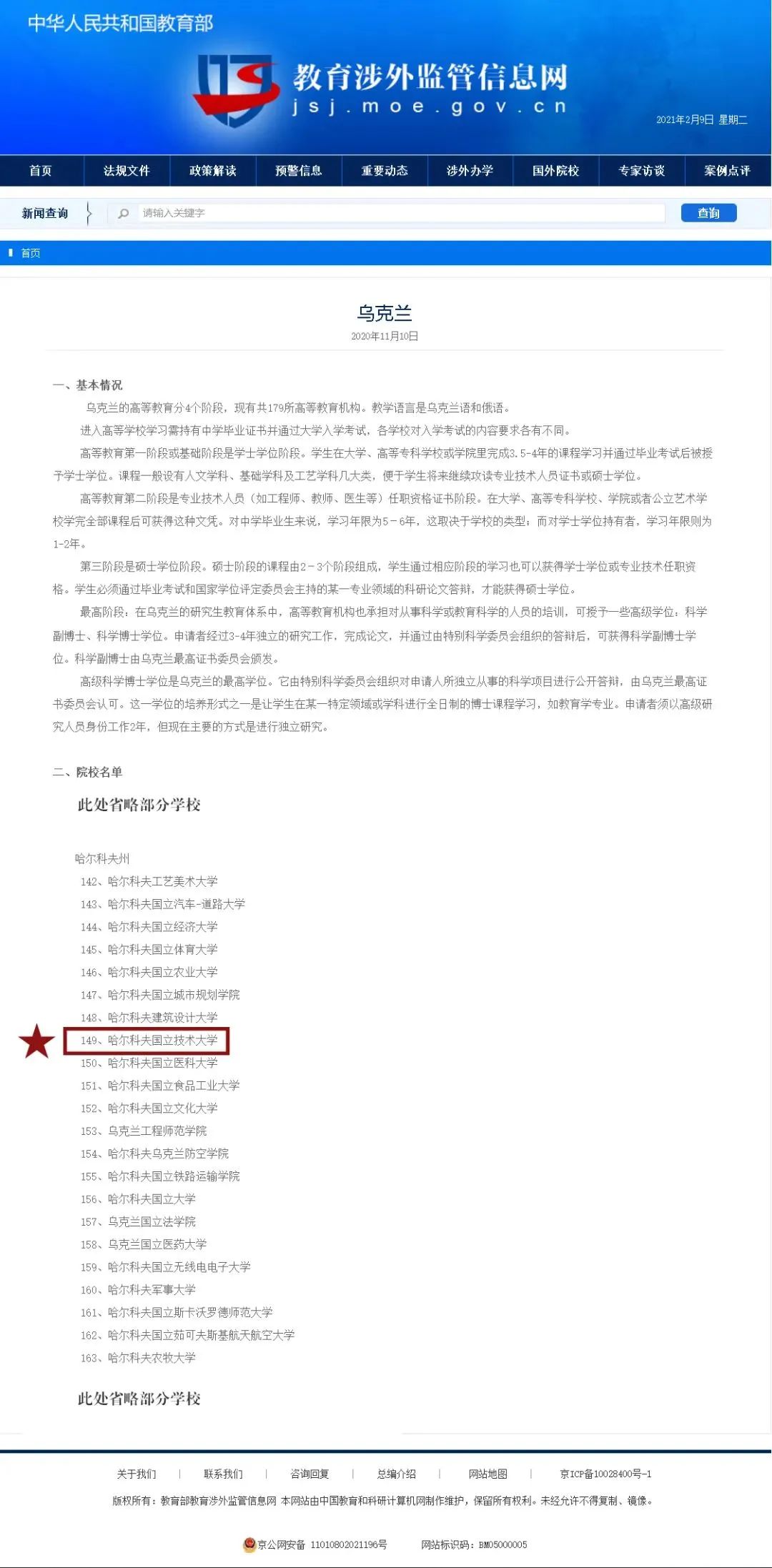 学校是中乌高等教育学历学位互认协定院校(俗称“教育部白名单院校”),在教育部涉外监管信息网可查,毕业可获得留服认证。