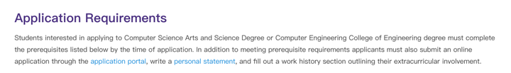 像计算机科学和计算机工程这样的热门专业就属于第三种类别,除了符合课程和学术成绩要求,还需要提交额外的网申材料。