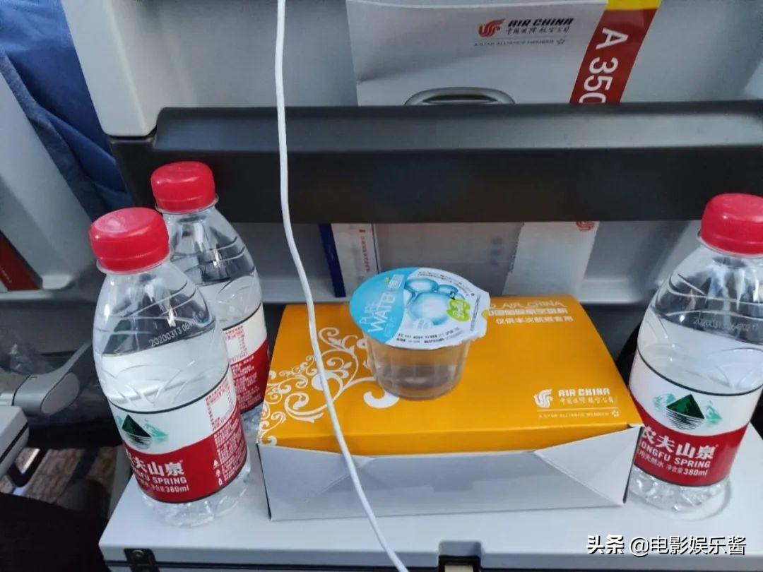 现在国航的飞机已经不在飞行途中提供热食了,而是改成每人一个餐盒+三瓶矿泉水,飞机平稳后一次性发完,然后就没有餐食了。