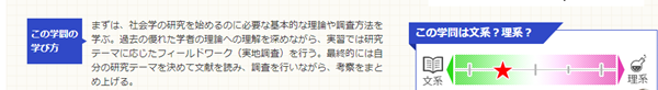 在上课的同时,也要选修被称为“演習”的课程(**社会学练习或**研究班等各种名称)。上课的人数比较少,最大限度地尊重学生的自主性。也就是磨炼自我学习能力的场所。针对学生个人的研究报告,参加者一边进行讨论,一边与教师一起寻找研究的方向、解决问题的线索和课题,同时也会阅读相关的文献。