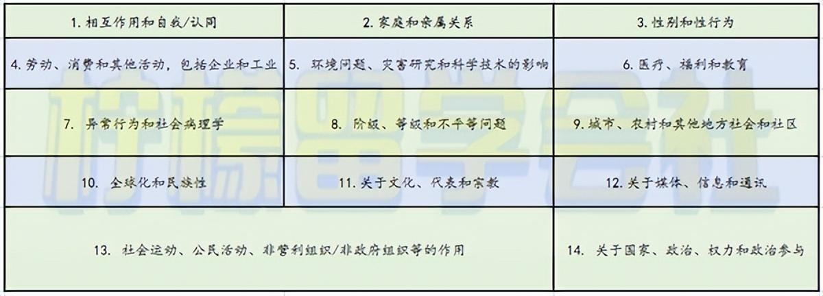参考日本的『大学教育の分野別質保証のための教育課程編成上の参照基準』社会学分野所列出的代表性研究课题,感兴趣的同学可以看看哦~