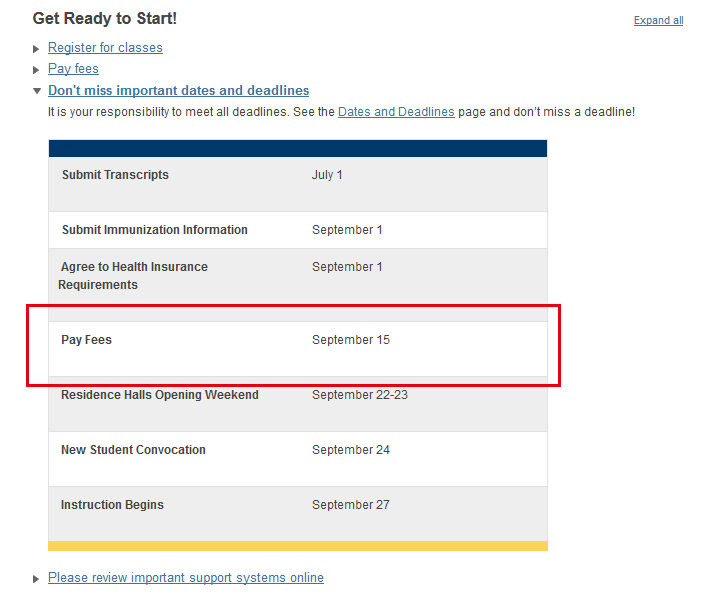 一般来讲美国大学的缴费时间限定在开学前到开学一两个周之内,具体还需参考学校发放的Orientation。