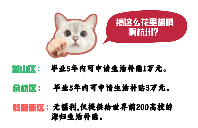 单看杭州,不同区、不同学历所能领取的福利就完全不一样,会让人十分的困惑..