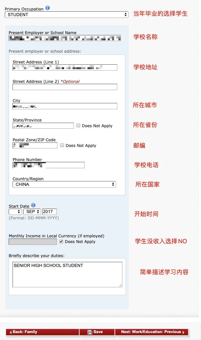 PS:有GAP经历的同学,这个Present Work/ Education/ Training Information,写Student或者Unemployed,下面的Description就写Unemployment即可,包括毕业后一直没工作待业和有了正式的工作(签过合同)然后辞职的情况。写Unemployment的话需要填写备注内容。