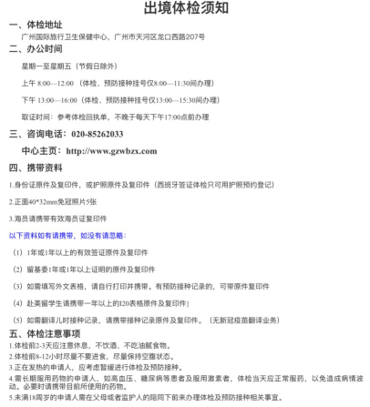 以广州国际旅行卫生保健中心为例,可以在公众号“广州国际旅行卫生保健中心”查看《出境体检须知》,以及根据指示预约体检。