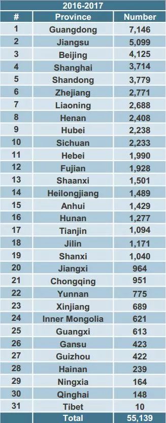 虽说北上广以及江苏的留学生占据了一大比例。但看看那个出产“大葱煎饼”的山东也不甘示弱啊。
