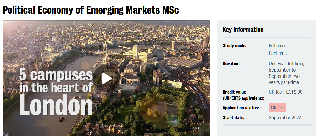 ④ Political Economy of Emerging Markets MSc