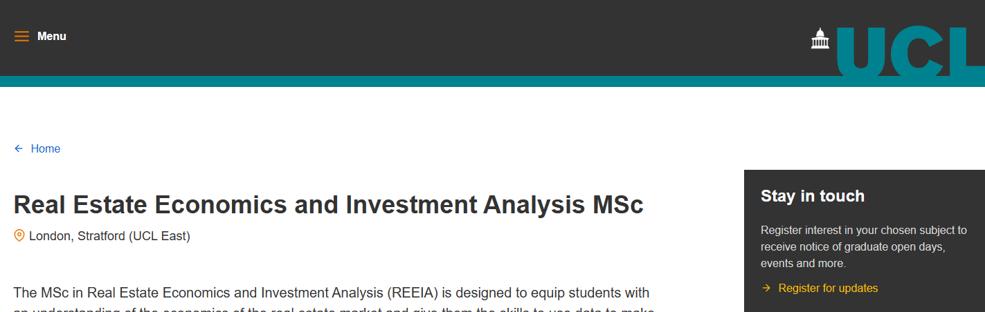 ⑤ Real Estate Economics and Investment Analysis MSc