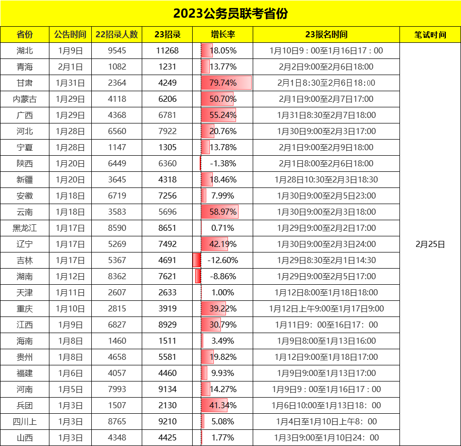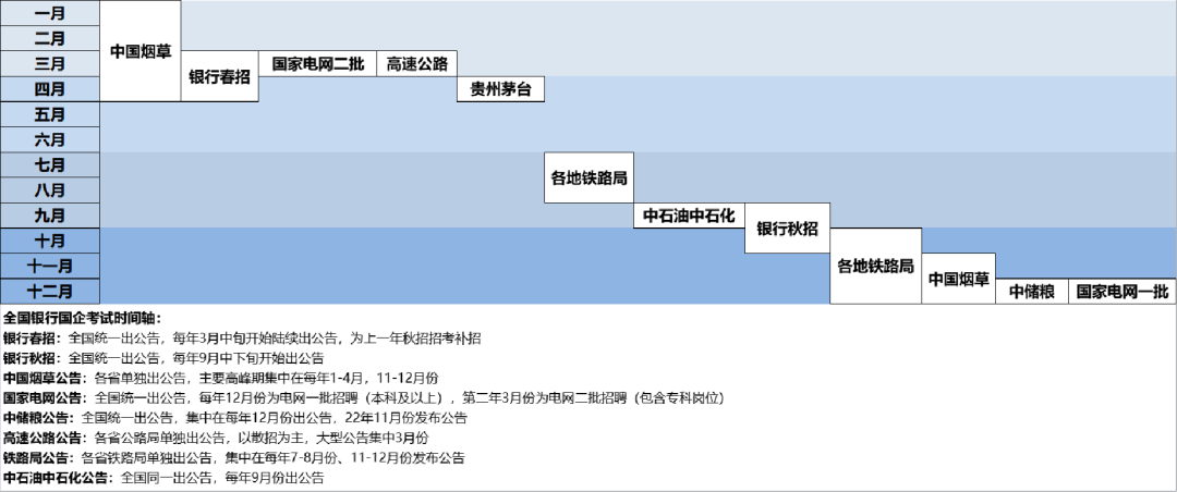 以历年国/省考时间为例,2024年国考公告预计在10月中旬发布,笔试时间预计在11月底进行;2024年省考公告时间不一,其中浙江、江苏、北京、山东、上海省考预计在11月-12月发布公告,12月-次年1月笔试,其余各省在次年的2-3月发布广告,3-4月笔试。不过有小道消息称,24年省考公告发布将会提前至1月份,具体时间以官方公告为准。