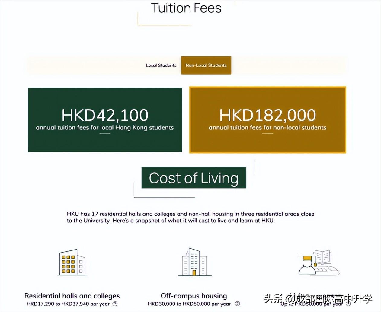 - 学费:12-16万/年(以香港大学为例)- 住宿费+生活费:10-15万/年