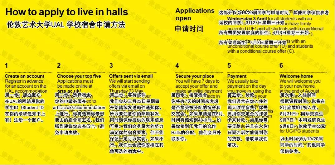 以下是UAL官网提供的宿舍申请流程,供大家参考: