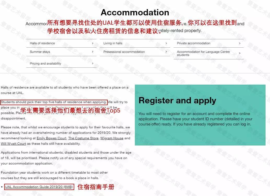我们现在点击进入UAL给我们的网址,进入Accommodation界面: