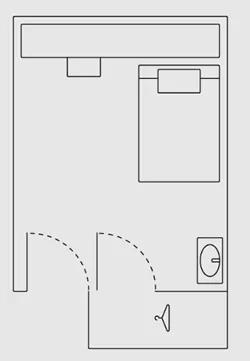 一种是在房间里除了以上设施之外多了一个洗手池,以下为平面图示例: