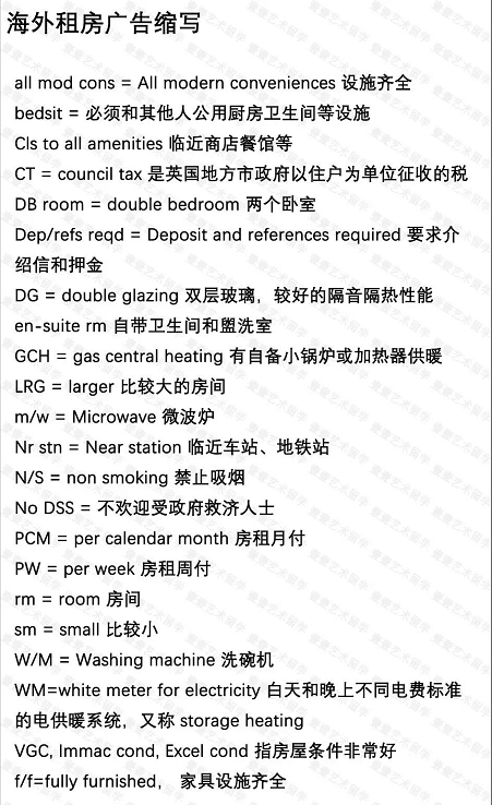 小编这里为大家介绍一下租房广告中的常见缩写,希望能给找房子的小伙伴带来帮助: