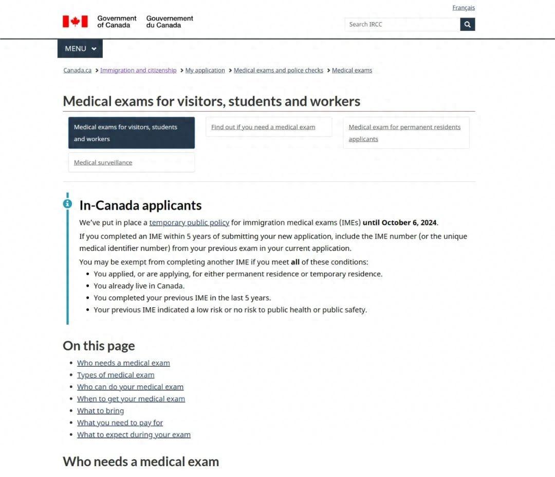 提交签证申请之后,IRCC会发送有关如何完成体检的说明,在收到指示后30天内进行体检。