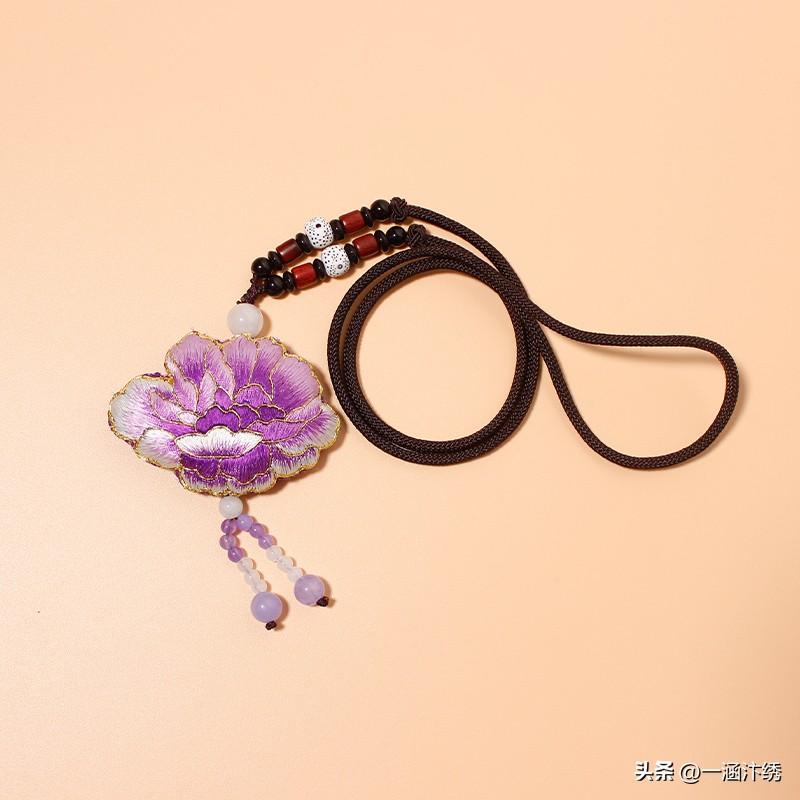 无论多普通的衣服,搭配一条好看的毛衣链不仅可以打造视觉上的亮点,也让整个人瞬间精神起来。这款手工刺绣的毛衣挂链,色彩雅致且极富质感,设计上也别有东方韵味,金丝勾勒的手工刺绣牡丹花型,既充满了复古国风,又给人莹润贵气之感,选择将此毛衣链作为出国伴手礼,寓意送礼之人将对方视为珍贵之人,希望将爱、幸福传递给对方。