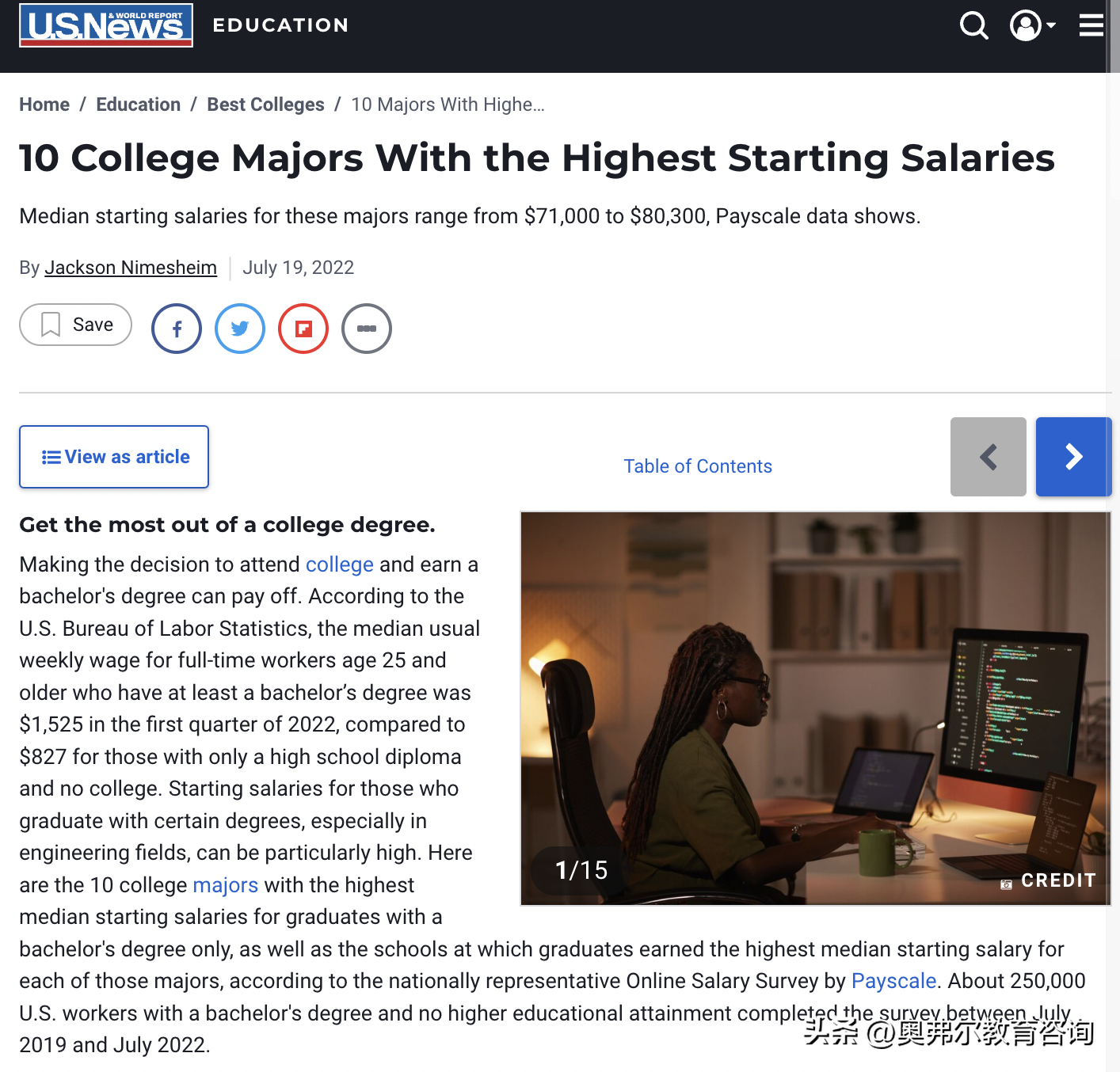 从2019年7月至2022年7月期间,Payscale的此次调查涵盖了约25万名拥有学士学位、没有更高学历的美国职场打工人,一起来看看排名吧!