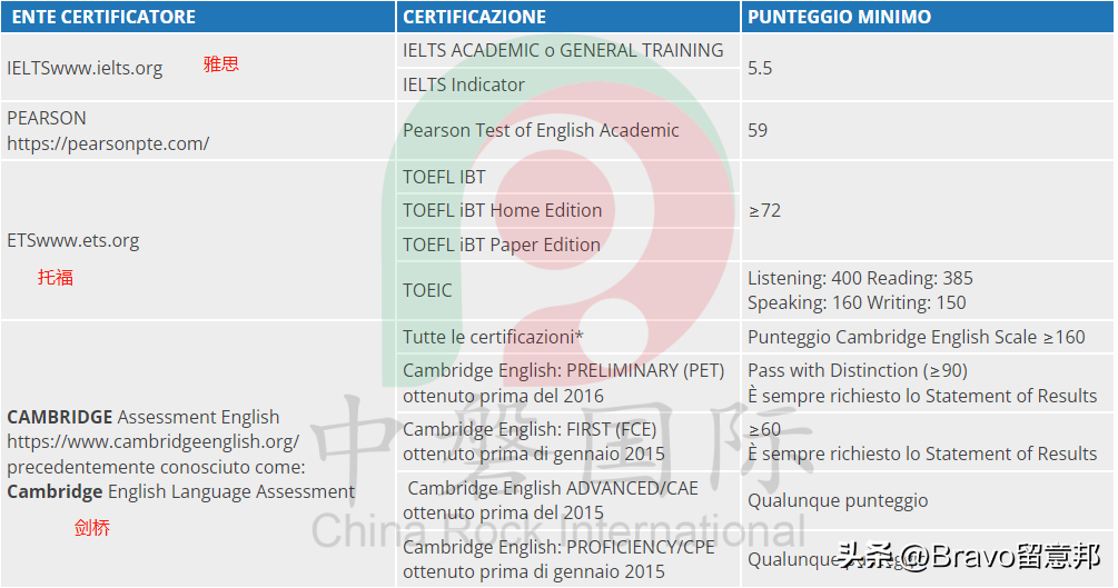 意大利语水平 B1 或更高 + 英语水平 B2 或更高
