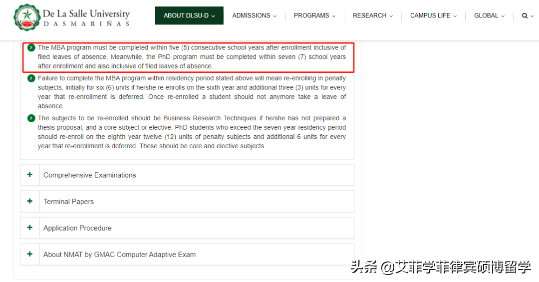 以菲律宾德拉萨大学为例,该大学的MBA课程必须在学籍注册后5个学年内完成,博士课程必须在学籍注册后7个学年内完成。所以该大学硕士保留学籍5年,博士保留学籍7年。
