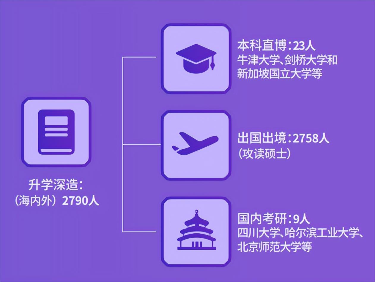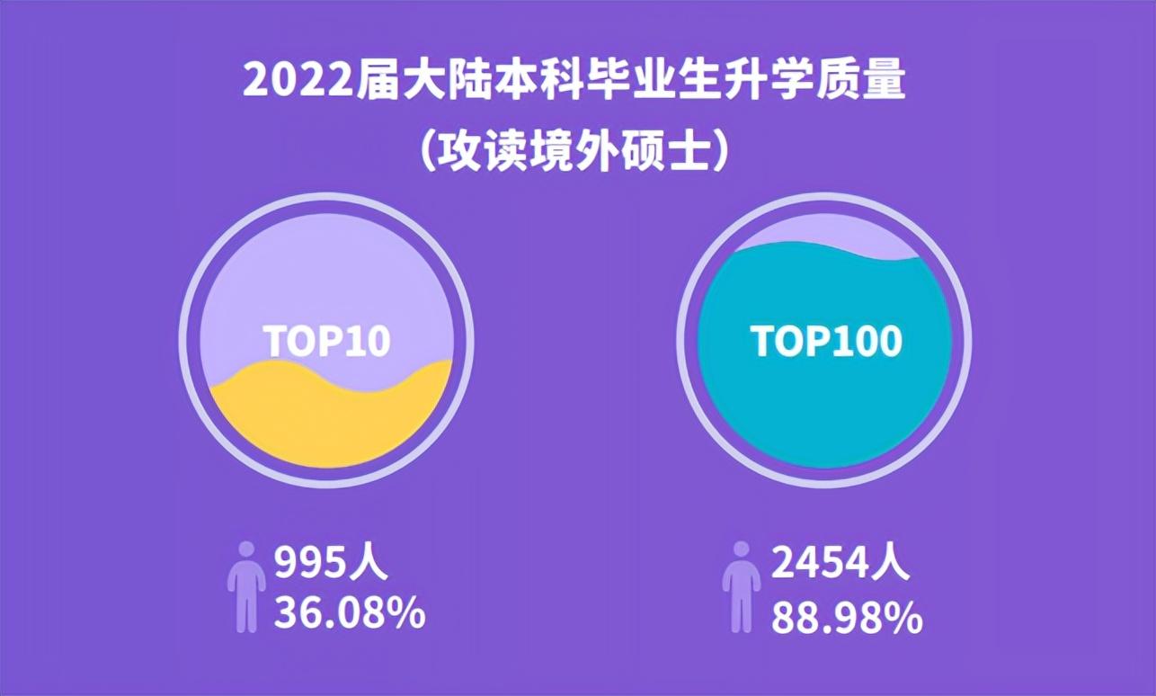 2022年,西浦共有大陆本科毕业生3261人,其中2790人都选择了海内外升学(国内考研只有9人、23人直博),绝大多数是出国出境攻读硕士,留学占比高达84.58%。