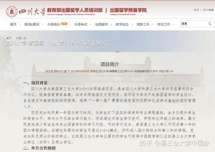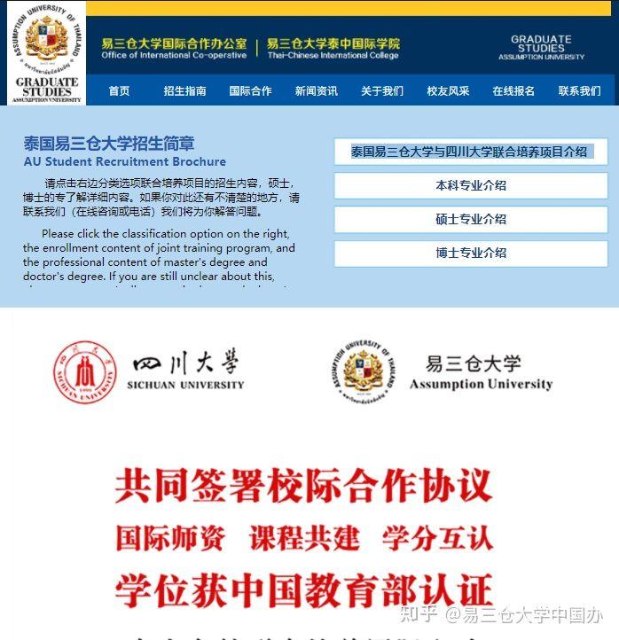泰国易三仓大学中国区网站,对该项目的详细介绍