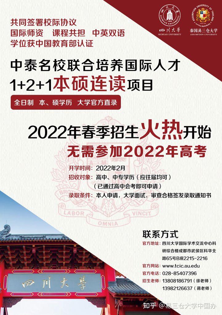 四川大学与泰国易三仓大学联合培训项目 1+2+1本硕连读