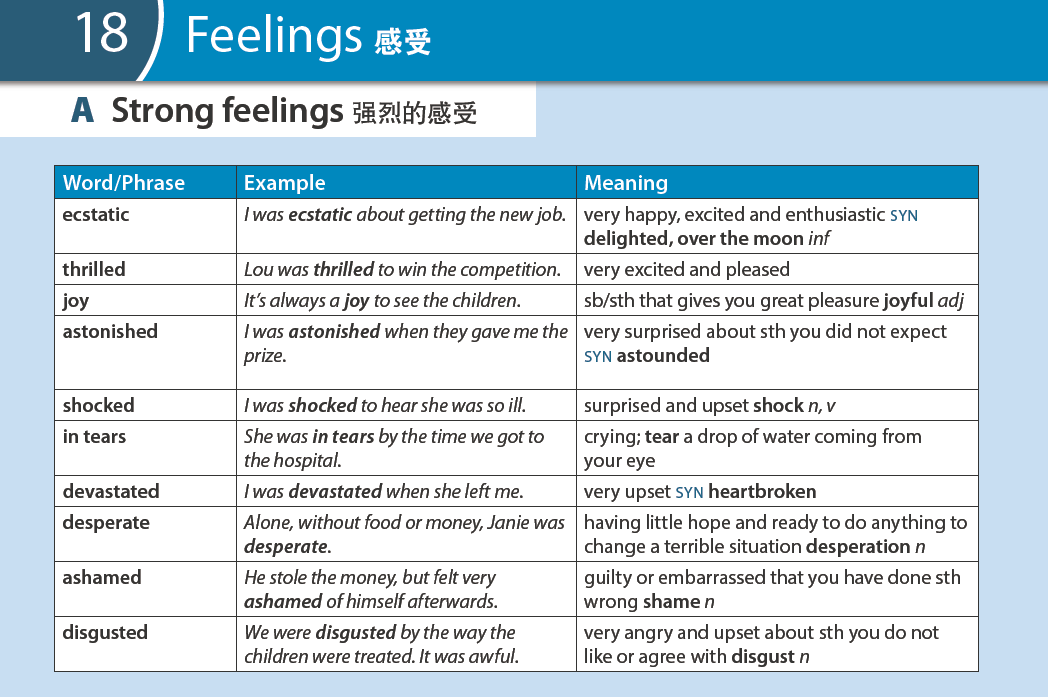 对于一些抽象的词汇,则以表格的形式呈现,包含了详细的英文解释和例句,一下子get超多同义替换。而且,这样的编排非常适合拿来练习雅思口语!