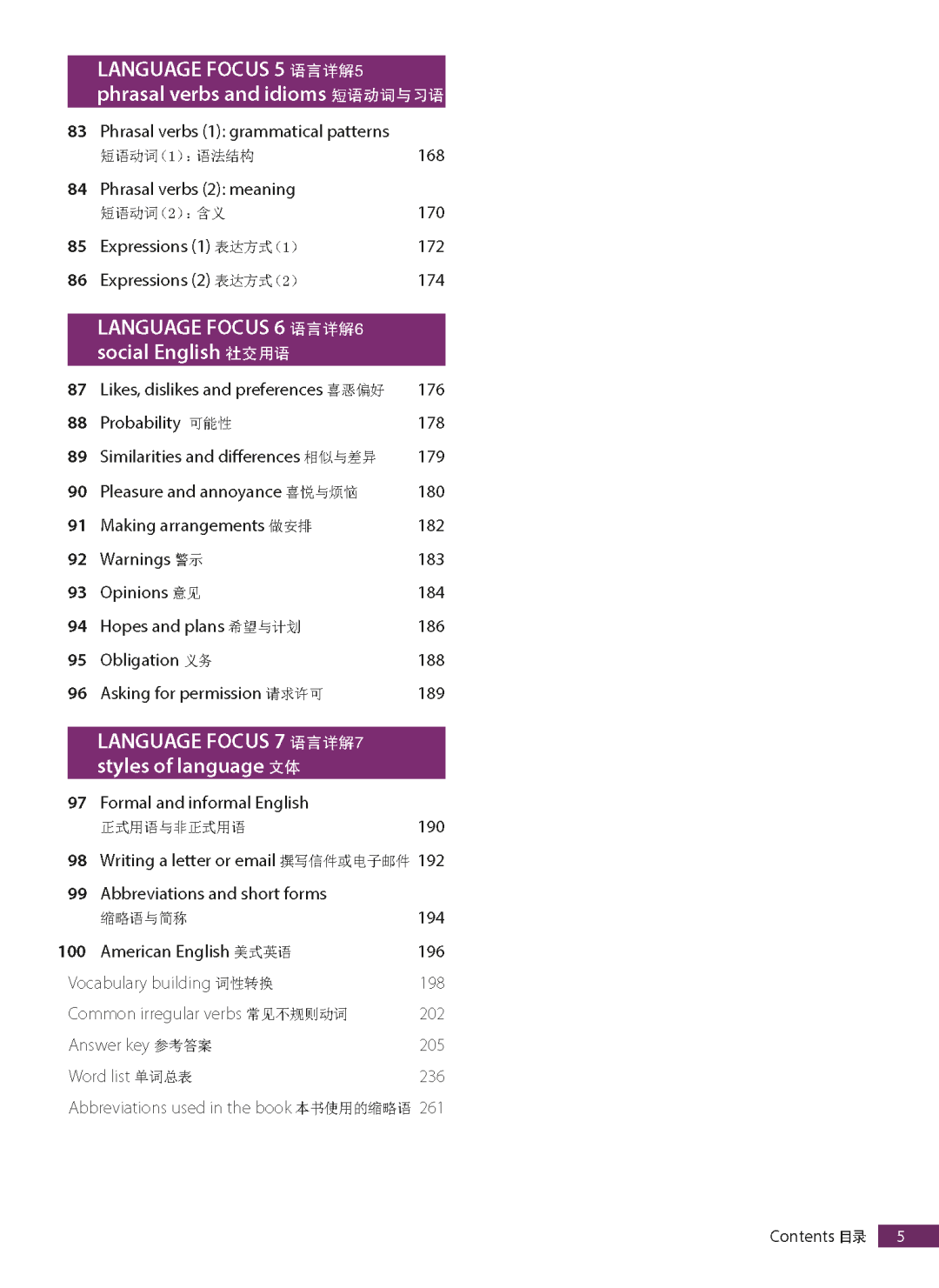 除此以外,每一节都有“词汇聚光灯”提供各种小tips:近义词辨析、短语搭配、单词特殊用法等等。这些细小的知识点既可以随看随学,也提供了汇总目录供学习者查阅,实在是太贴心啦。