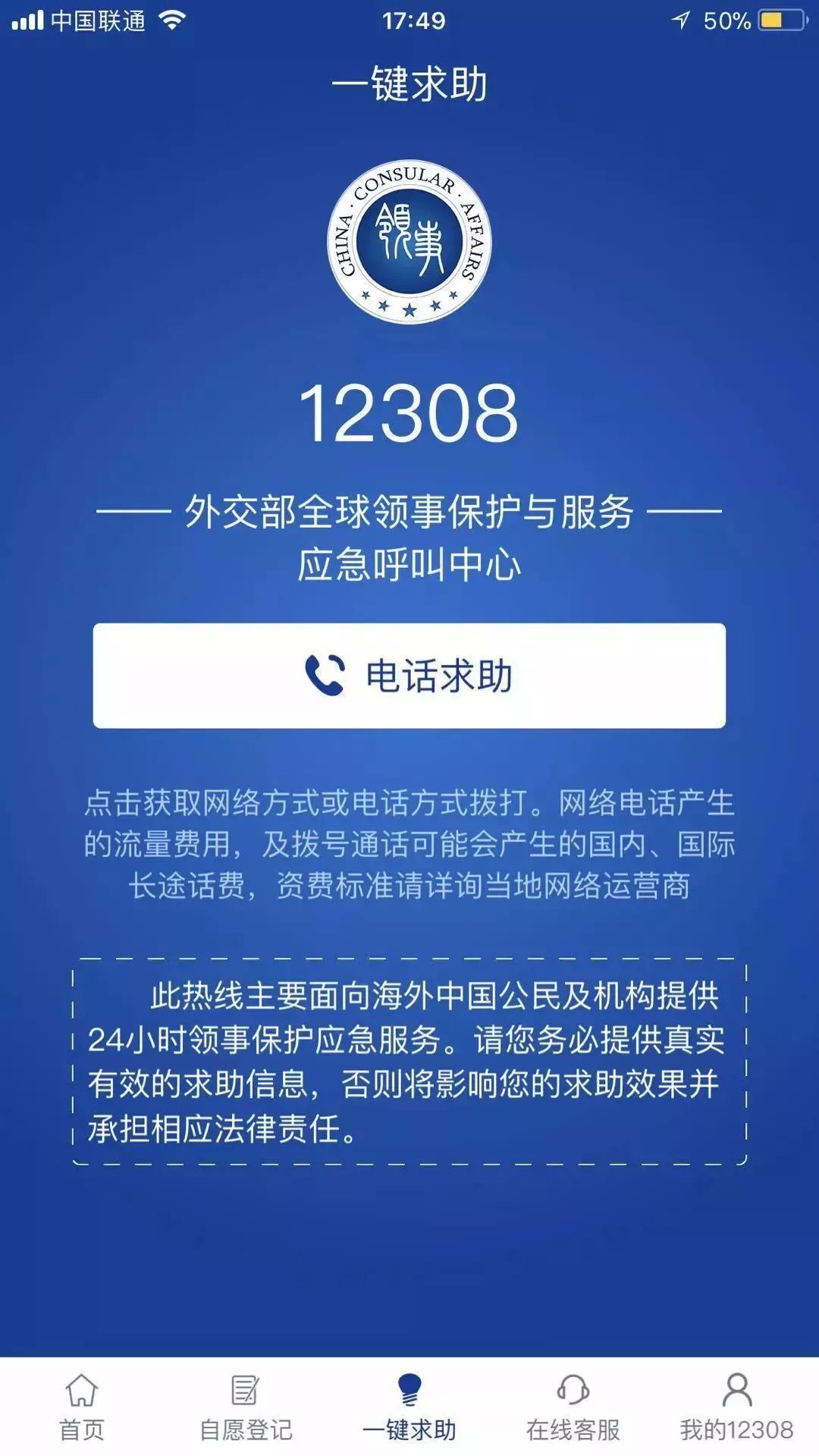 有了客户端,真正实现一键求助。中国公民在全球任意地点、任何时间,均可使用客户端依托移动互联网拨打外交部12308热线,无须另行支付国际通话费。
