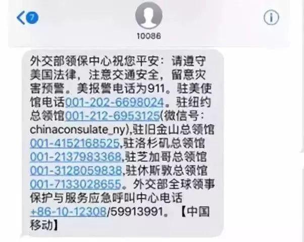 自2011年起,中国外交部领保中心即与中国联通、移动、电信合作,以手机短信方式向赴181个国家和地区的中国公民发送海外安全风险国别提醒。前往美东地区的中国公民只要开通手机漫游,入境后就会第一时间收到外交部领保中心发送的安全提醒短信,其中包括中国驻美使领馆的紧急联系电话。请大家注意妥善保存,以备不时之需。