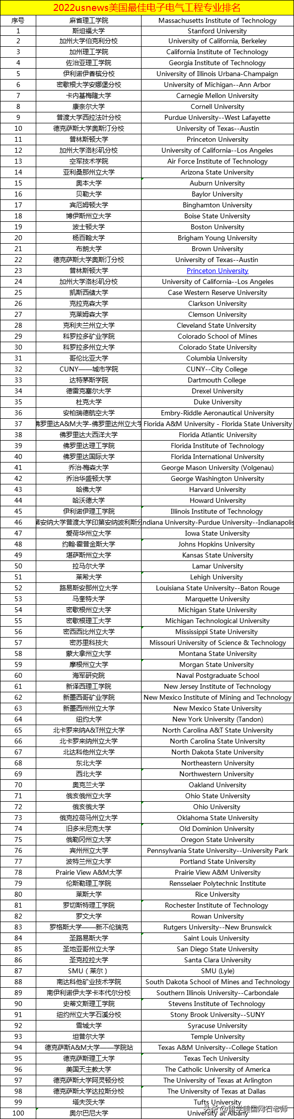 五、2022usnews美国最佳电子电气工程专业排名top100