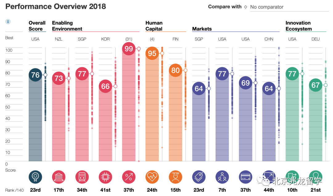 根据世界经济论坛(World Economic Forum)2019年发布的《2018年版全球竞争力报告》中,爱尔兰在全球140个经济体中排名第24位。其中,爱尔兰在宏观经济环境稳定性、人口健康指数、劳动力的总体技能水平、教育质量三项指标中排名突出。