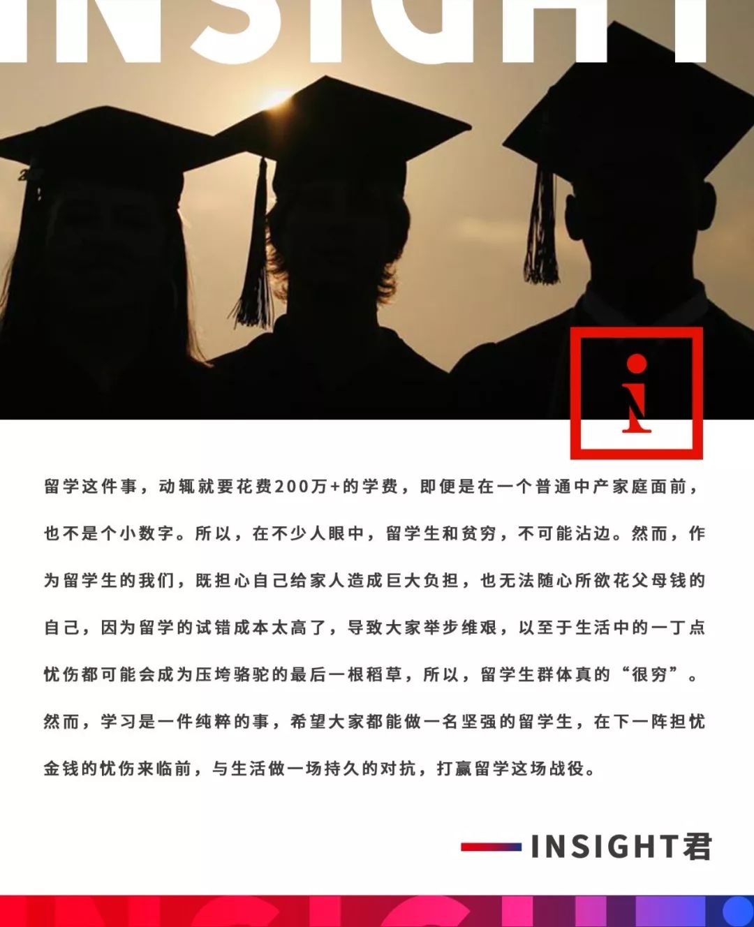 我相信在很多人眼中,身为留学生的我们是最没有资格喊“穷”这件事的,大概是因为我们既没有流落街头体会过风餐露宿,又没有像父母那一代人白手起家一路打拼上来。在物质上,我们似乎只是坐享其成父母那辈的奋斗成果,但精神上,我们在感激父母资助的同时也承受着巨大的压力。