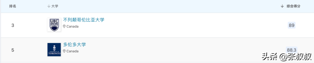 即不列颠哥伦比亚大学(全球第3)和多伦多大学(全球第5)。不列颠哥伦比亚大学更是培养出了多位奥运奖牌获得者,是北美传统体育强校。