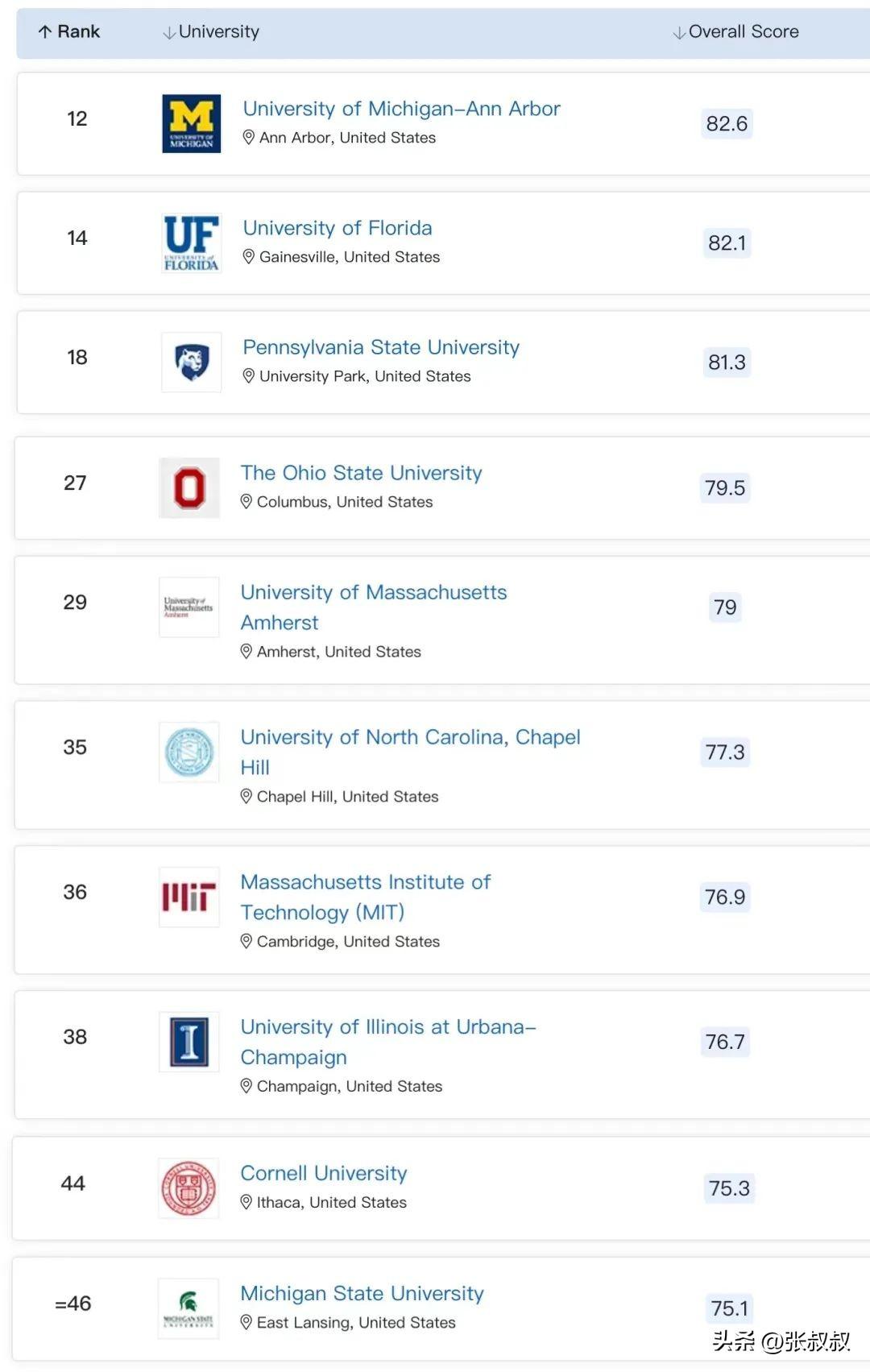 以下2022年QS体育专业美国大学排名榜单TOP10院校供大家参考: