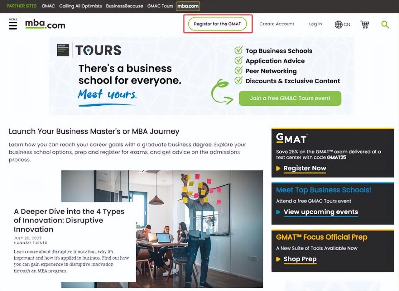1、登入GMAT官网,在首页选择"注册GMAT考试";