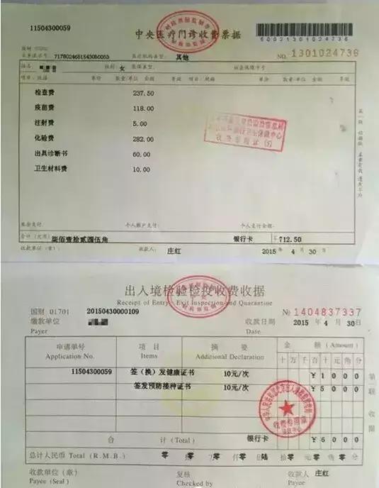 这两个本据说是过海关的时候可能被抽查,所以虽然麻烦又花大笔银子,还是要办一下的= =必须去指定单位体检,普通医院或防疫单位不颁发。