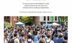 北卡罗莱纳大学教堂山分校宣布:从2024年秋季开始,北卡罗来纳大学教堂山分校将为家庭收入低于8万美元的州内本科生支付学费和强制性费用,以扩大其长期以来对入学和负担能力的承诺。
