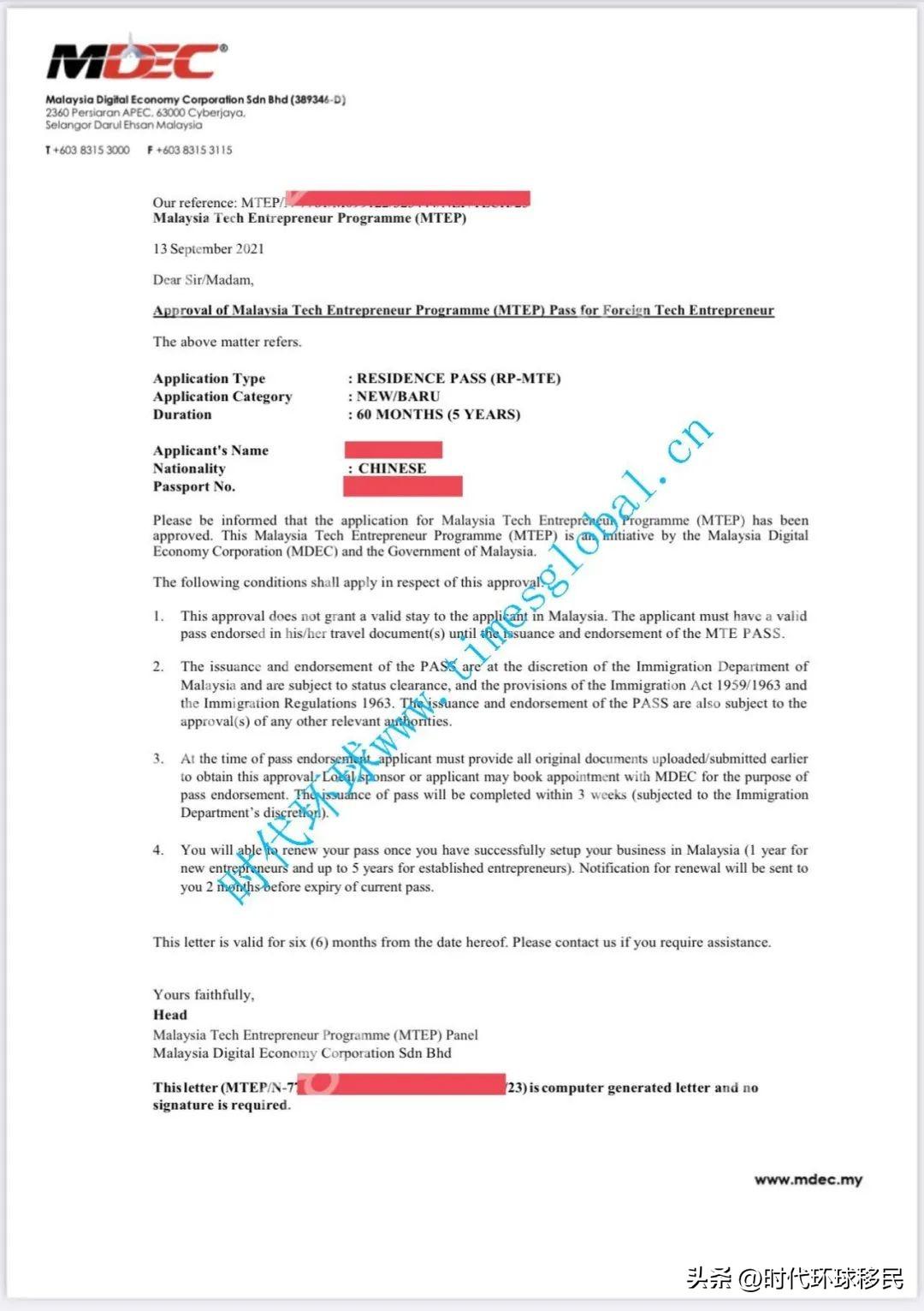 马来西亚科技企业家签证:官方网站 https://mdec.my/mtep