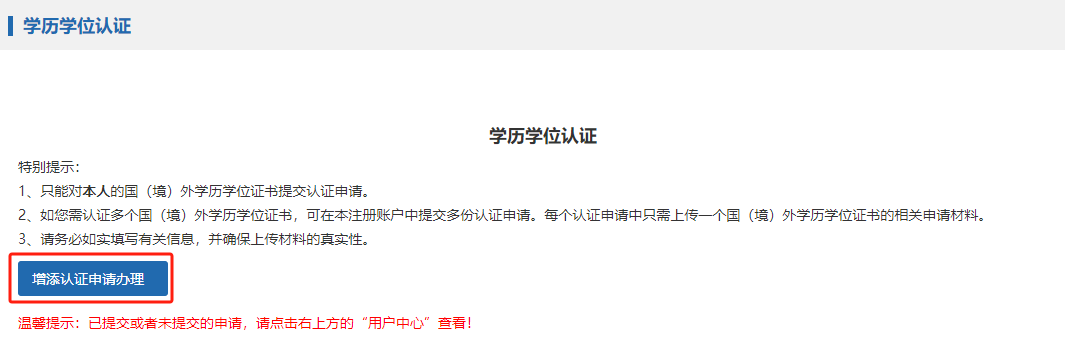 如需认证多个文凭证书,请单独提交每个项目的认证申请。