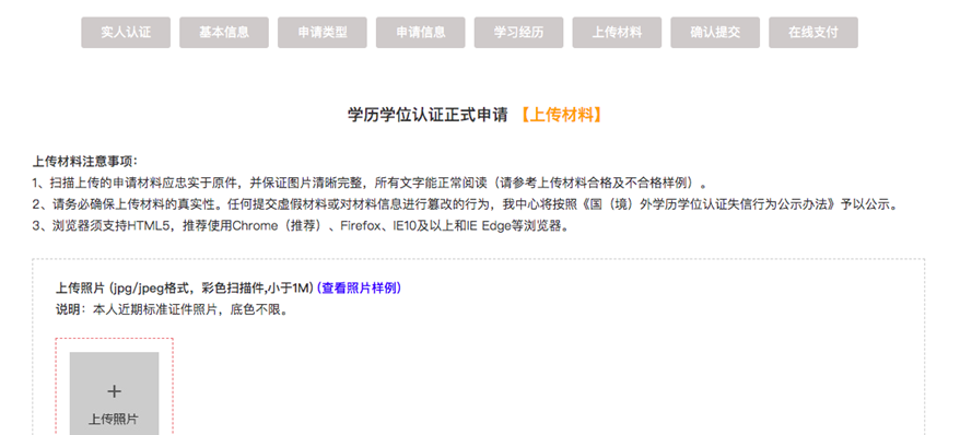 认证申请所需所有材料均仅需上传电子版,请勿将申请材料原件寄至留学服务中心;