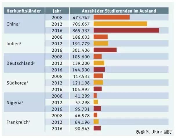 有一点大家或许会感到意外,说来有趣,德国竟然也是一个留学生出口大国,2016年德国出国留学人数144900人。除中国和印度外,世界第三的留学生出口国竟然是德国,相信很多人没有想到吧~