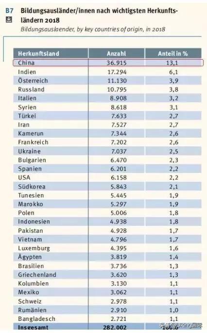 Wissenschaft weltoffen 2019报告出炉,数据整合来源于DAAD(德意志学术交流中心)和DZHW(德国高校与科学研究中心),是一次专门针对德国的外国学生流动情况的调查。调查总共分为3个部分,第一部分就系统的概括了各国留学生的流动情况。