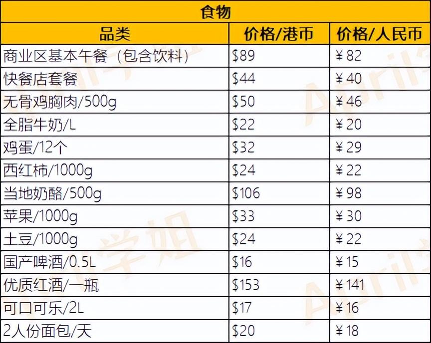 在食物方面,香港当地的消费水平非常高,基本上一个人出去吃简餐的价格会在50-100左右,而平均的食材价格相对于大陆也比较昂贵。