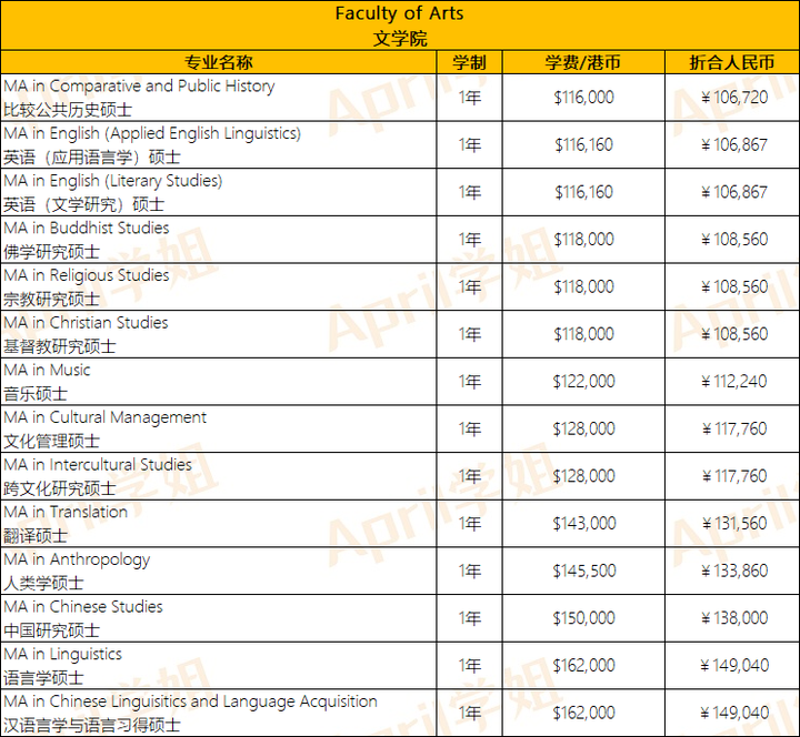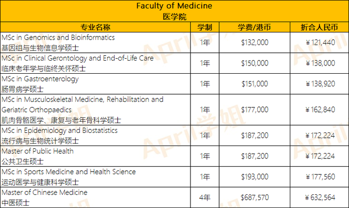 根据以上学费分析情况来看,以港中文硕士课程为代表: