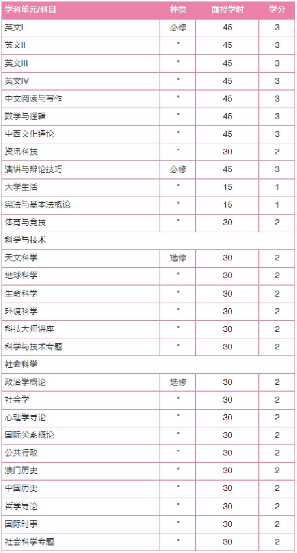 03全面科学课程设置完成课程所需的学分为132学分,其分配如下: