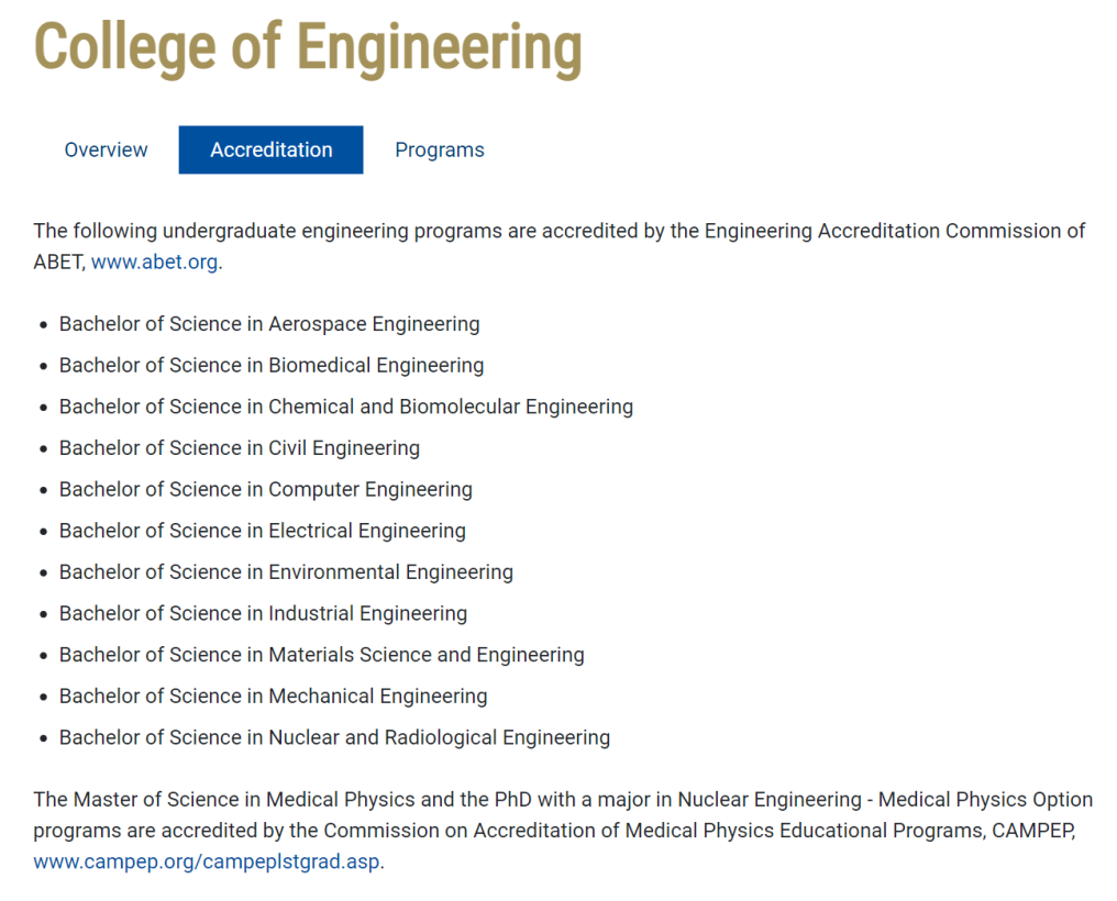 GIT以下本科工程学课程已通过ABET工程认证委员会的认证: