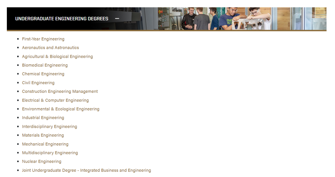 值得一提的是,Purdue本科提供了15个丰富的Engineering专业: